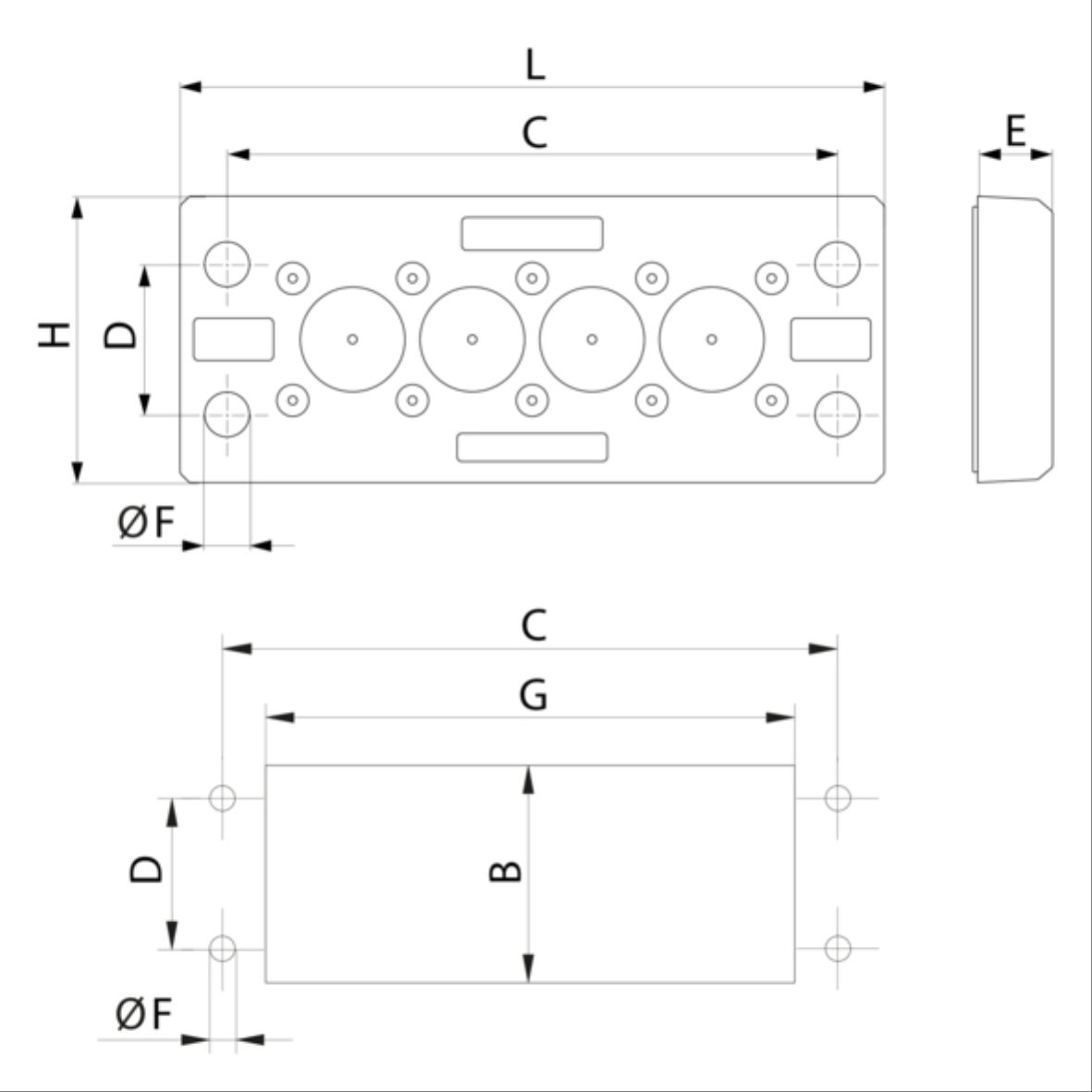 多层矩形电缆入口板,刚性框架 Membrane cable entry systems in self-extinguishing elastomer reinforced with a glass fiber polypropylene structure.• Double seal to improve cable trac
