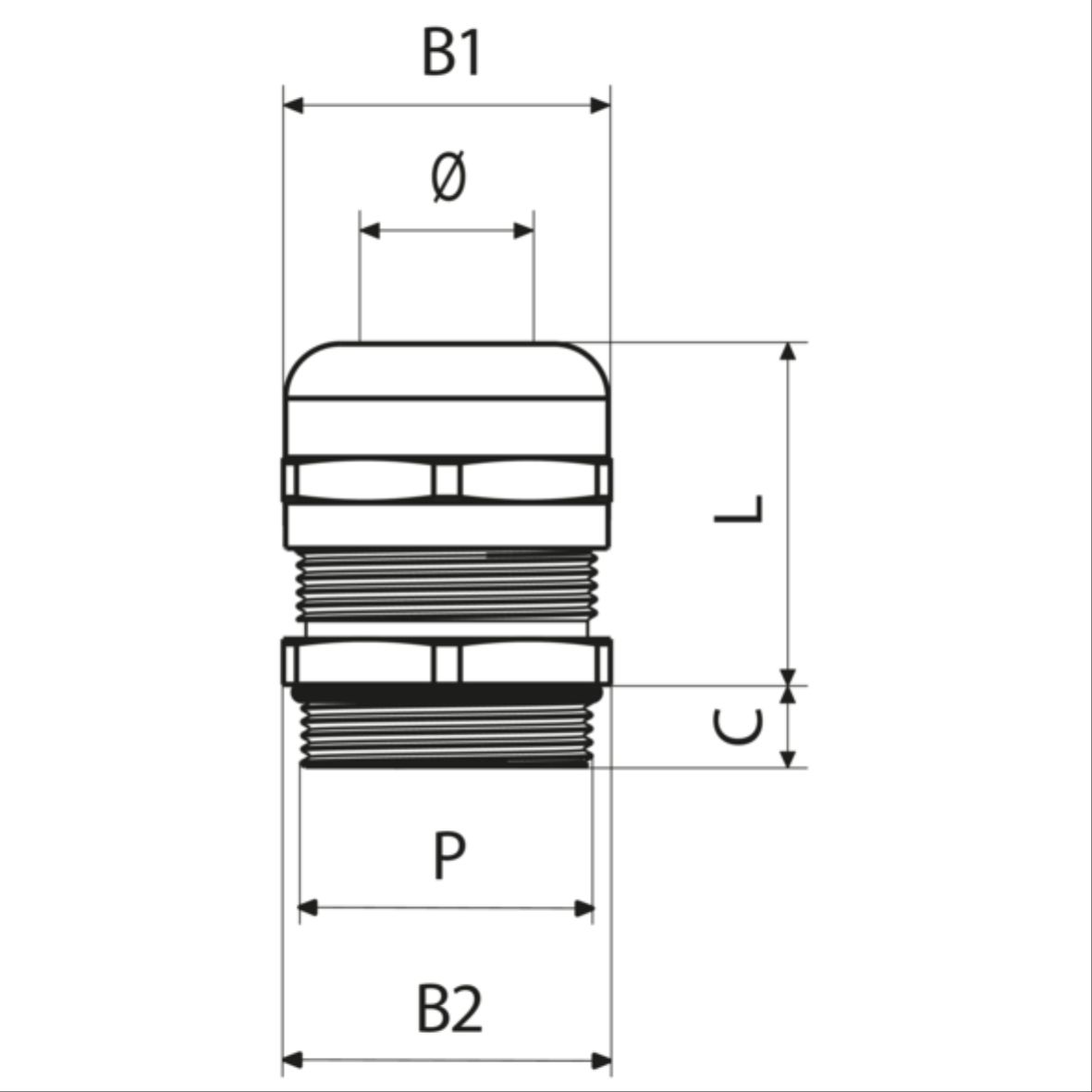 | tipo | P | 紧固扭矩(建议值?UL?) [nm] | 电缆套直径范围 [mm] | B1 [mm] | B2 [mm] | C [mm] | L [mm] | ØF [mm] | 长度 [mm] | 最小包装单元 [pce] | 标准包装单位 [pce] | 符合ROHS标准 | NEMA 类型 | IP防护等级 |