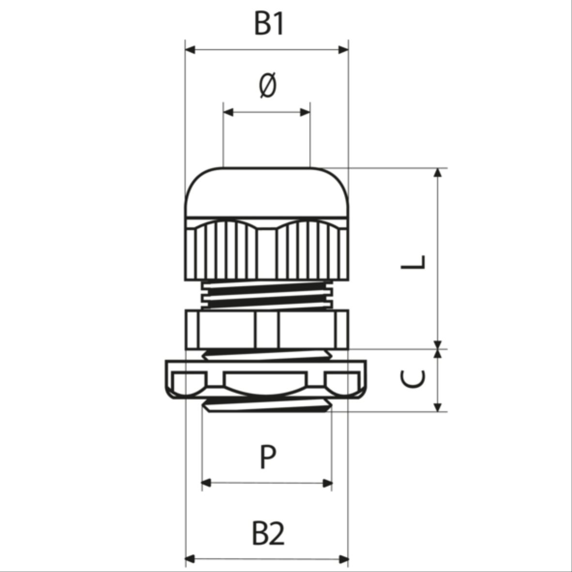 | tipo | P | 存在外侧密封件 | 外侧密封件材质 | 紧固扭矩(建议值?UL?) [nm] | 电缆套直径范围 [mm] | B1 [mm] | B2 [mm] | C [mm] | L [mm] | ØF [mm] | 长度 [mm] | 最小包装单元 [pce] | 标准包装单位 [pce] | 符合ROHS标准 | EN 45545-2认证 (r22) | EN 45545-2认证 (r23) | 参考标准 | NEMA 类型 | IP防护等级 | IP防护等级 (1) | IP防护等级 (2) |