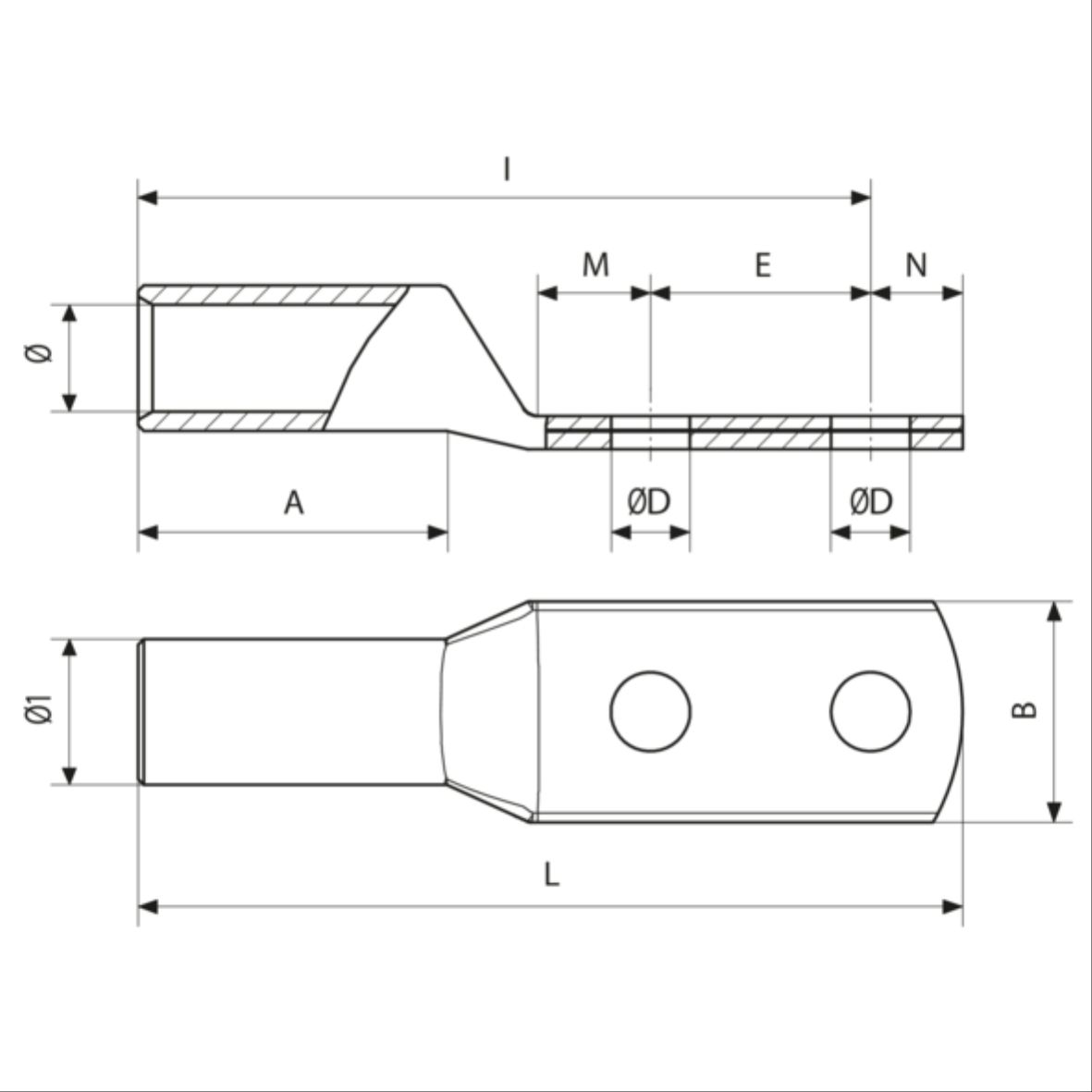 重型眼片,无检查孔,长颈,双孔连接,用于铜导线