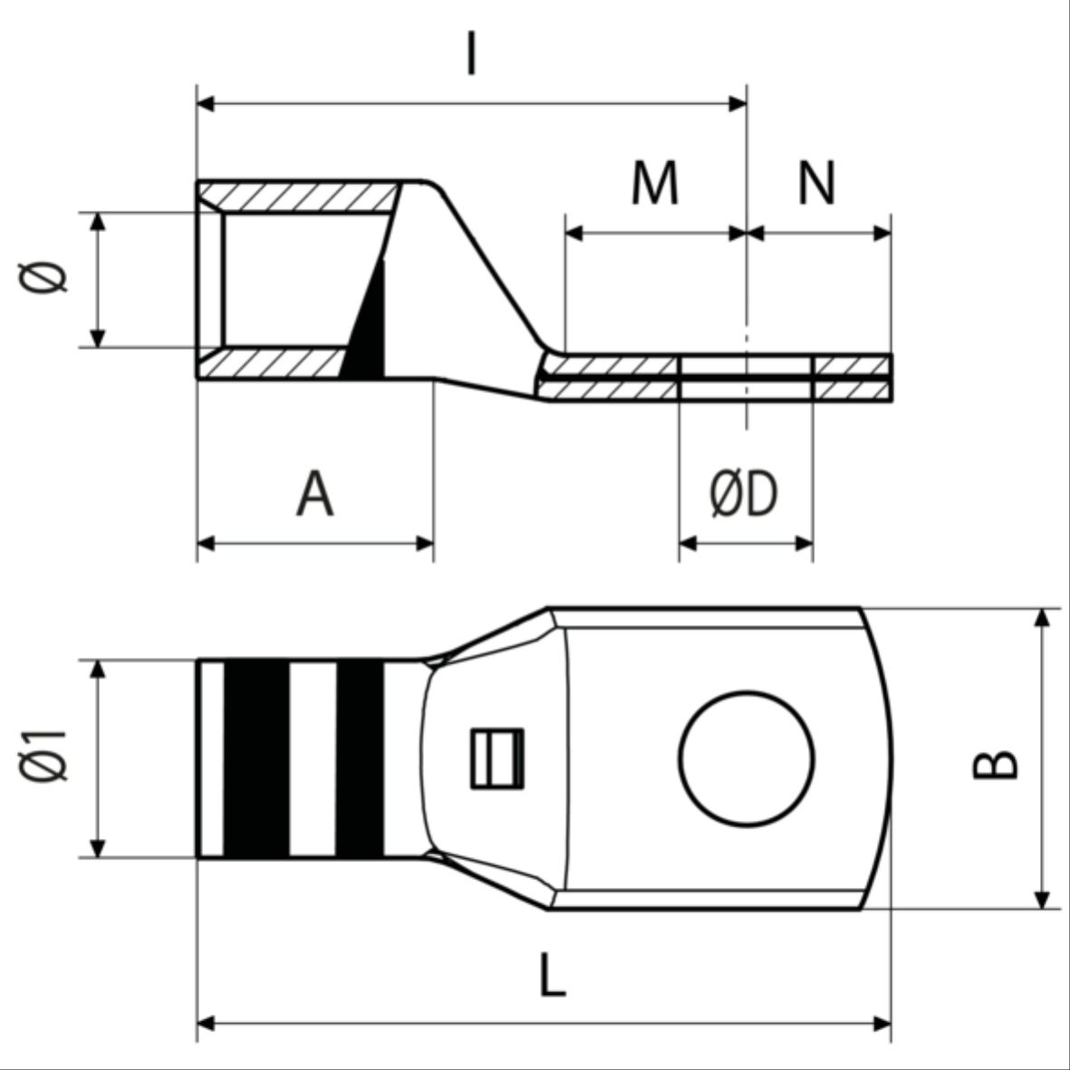 套圈上有一个倒角和一个检查孔,以方便导线插入接线片,并避免基本导线的拉伸。