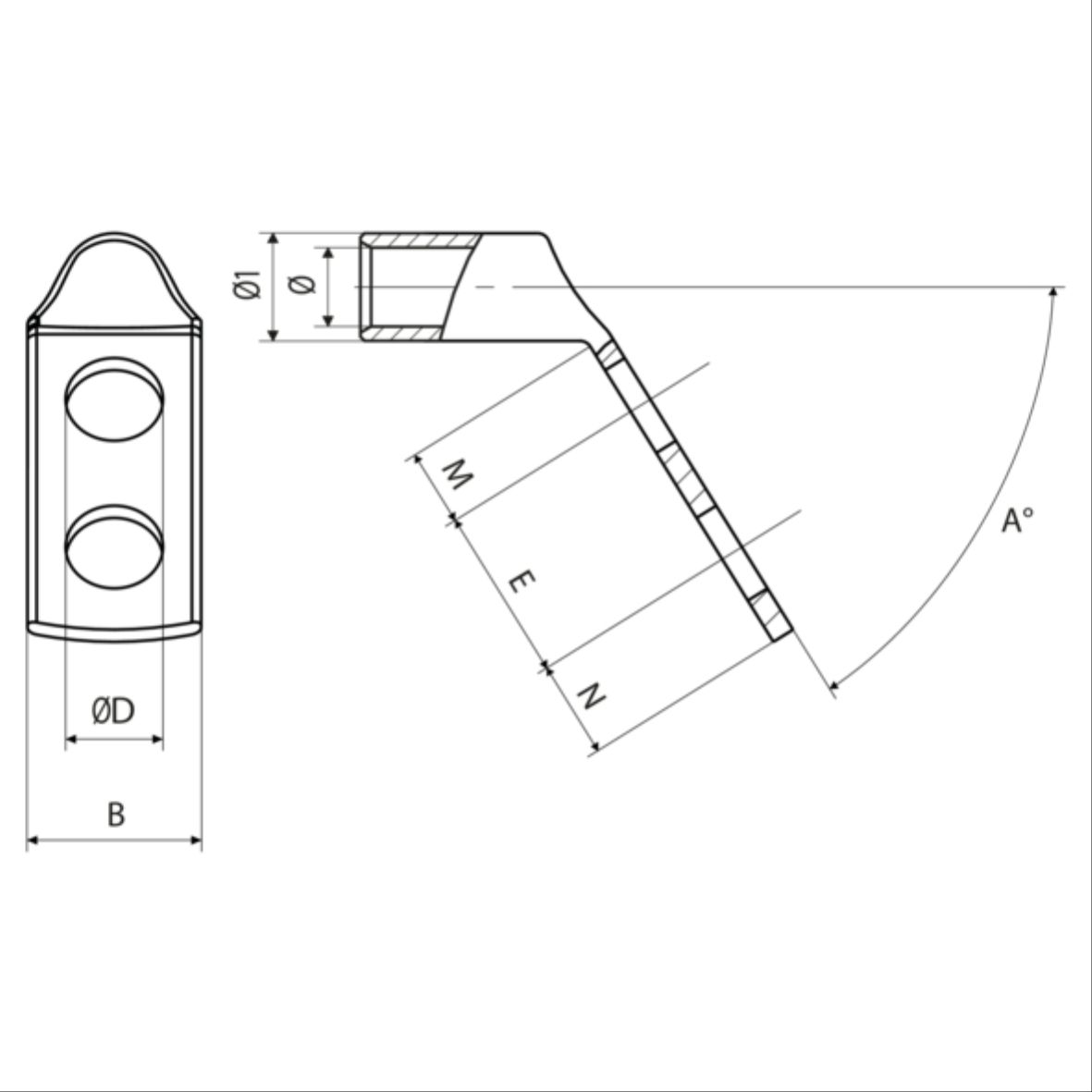 2A-2M/55° 系列 55° 弯电缆接线片由纯度超过 99.9% 的电解铜管制成。