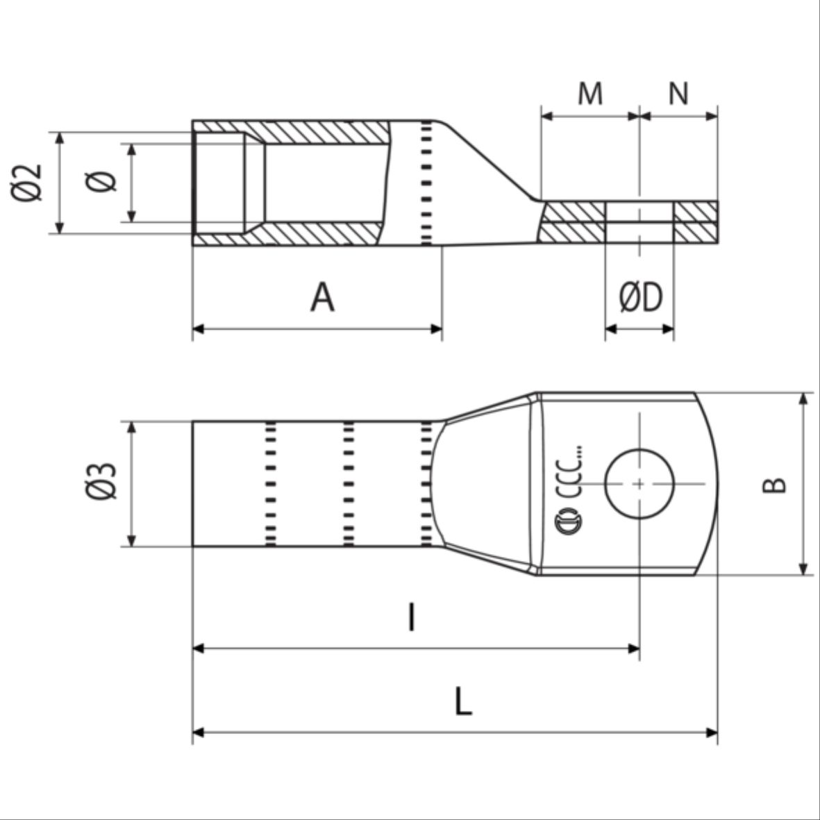 CCC 系列电缆耳是连接 35 mm2 CAT 铜/钢电缆的理想选择。907/697. 电缆耳的特殊入口允许电缆的绝缘层被压缩在内部,从而确保防止氧化,避免使用热缩套管。 电缆耳的挡板可确保即使在剧烈应力下也能保持最大的稳定性。没有检查孔有助于防止湿气和灰尘进入。 电缆耳环的尺寸可以在不影响连接器强