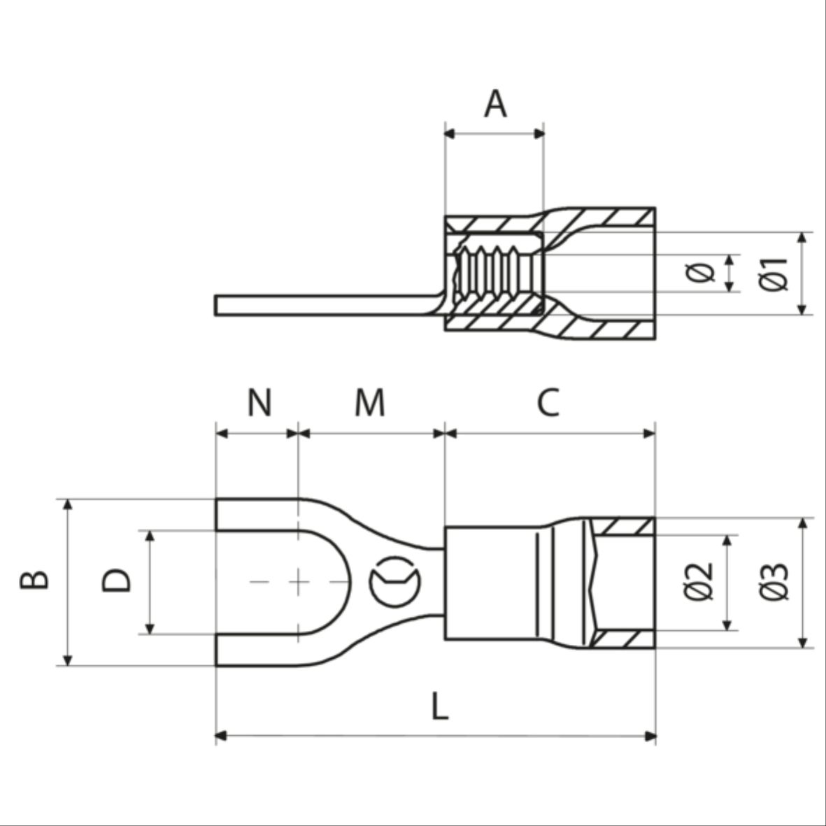 叉形端子,预绝缘聚碳酸酯,用于铜导线,无卤素