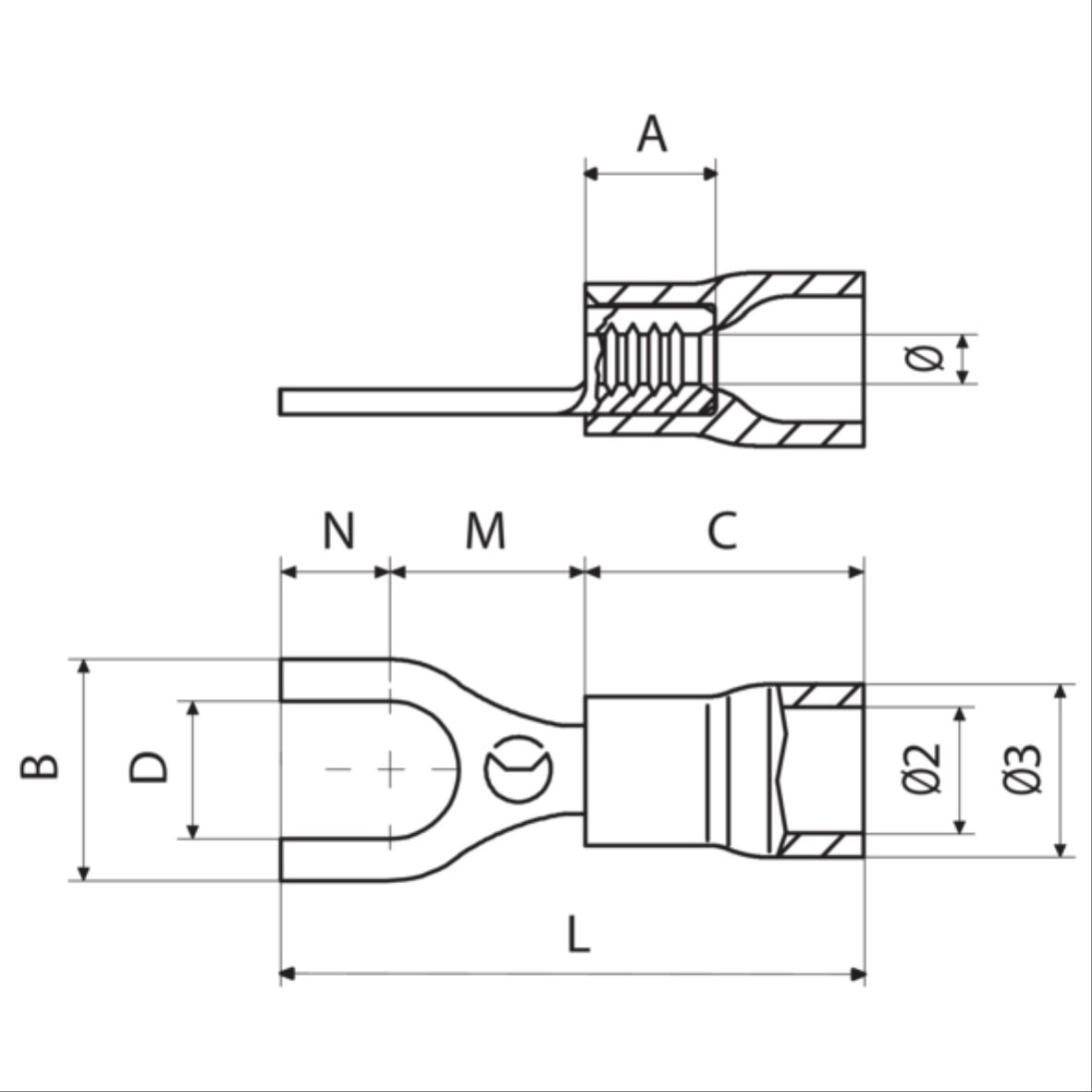 叉形端子,预绝缘聚氯乙烯,用于铜导线