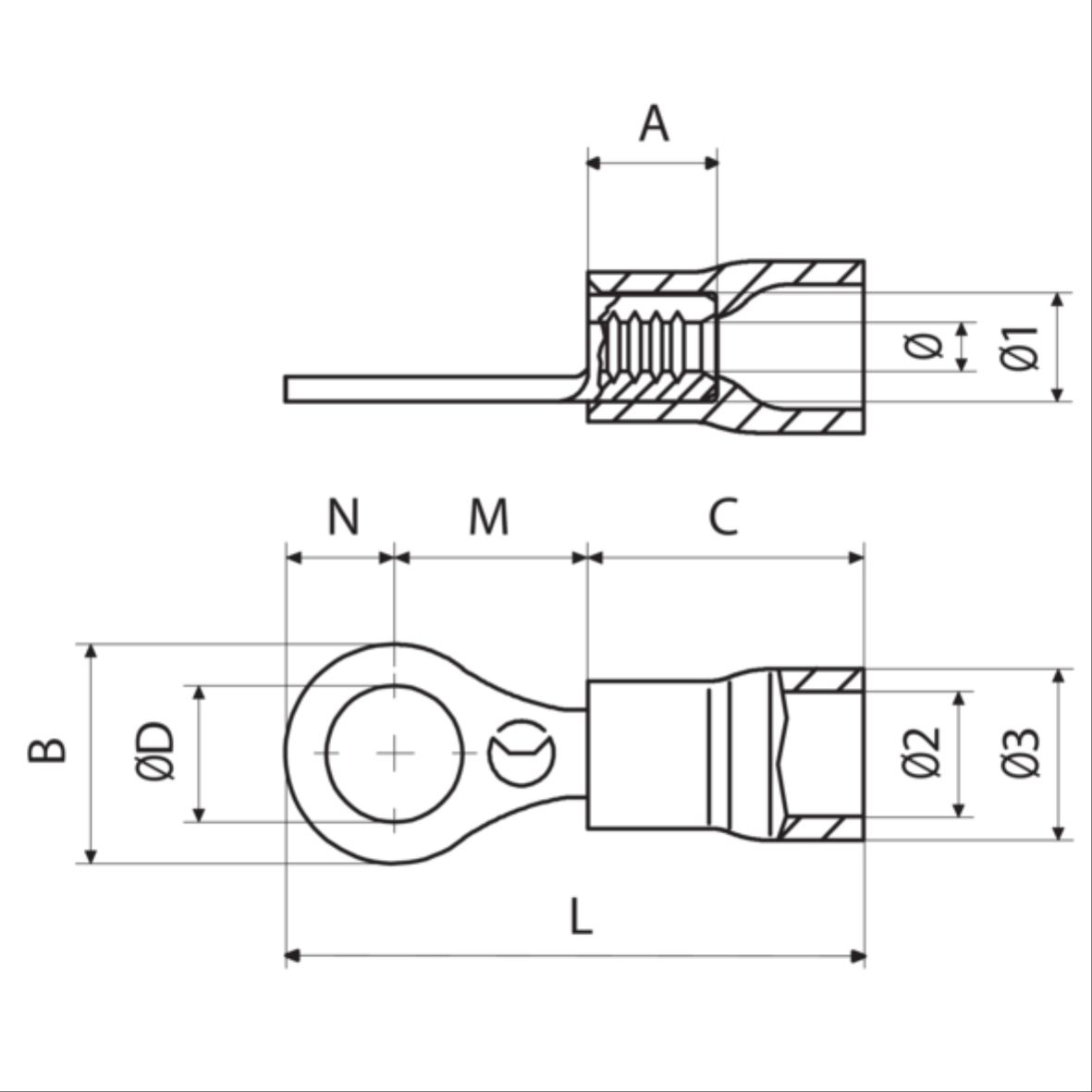 预绝缘聚碳酸酯连接孔电缆耳,用于铜导线,无卤素