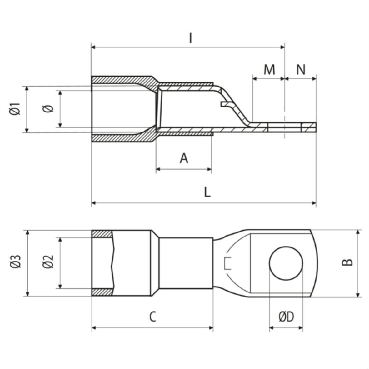 ANE-M 系列电缆耳由纯度超过 99.9% 的电解铜管制成。它们是连接极为柔软的 5 级和 6 级 CEI 20-29 铜电缆的理想选择。