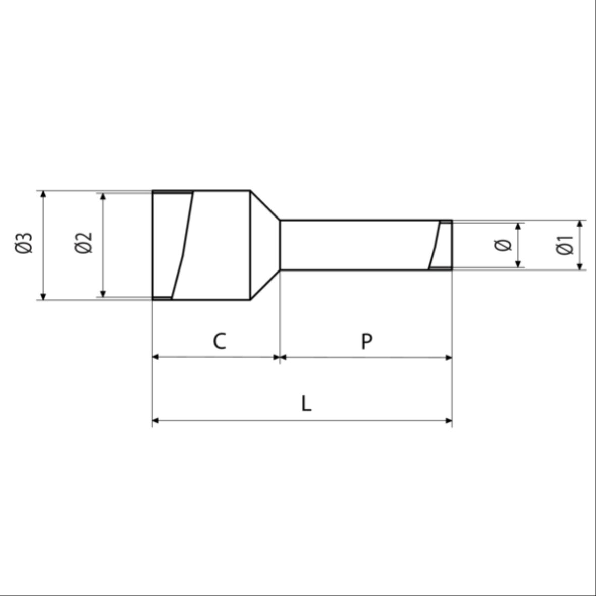 | tipo | 绝缘套颜色 | 电缆截面范围 [mm²] | C [mm] | Ø2 [mm] | 电缆剥皮长度 [mm] | Ø1 [mm] | P [mm] | L [mm] |