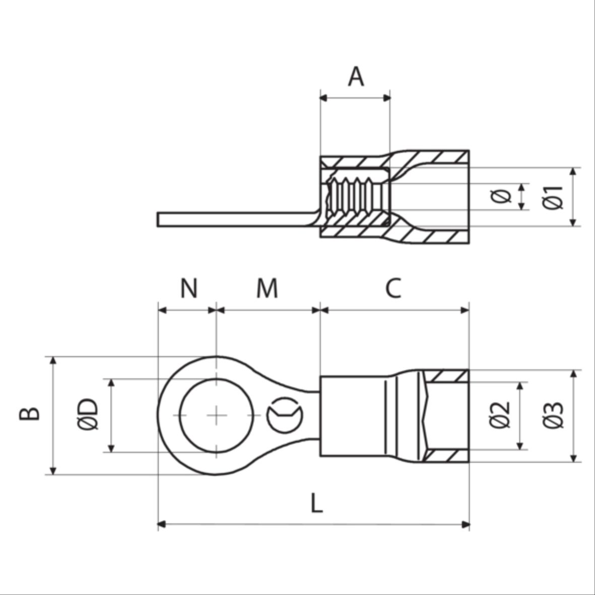 漏斗形铜管夹在套圈和绝缘外套之间,因此这种接线片具有极高的强度。 除了便于导体插入外,这种铜管还能在压缩过程中沿着导体绝缘层变形,从而提高整体机械密封性和连接质量。